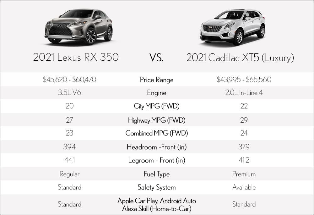 Lexus RX vs Cadillac XT5: A Comprehensive Comparison